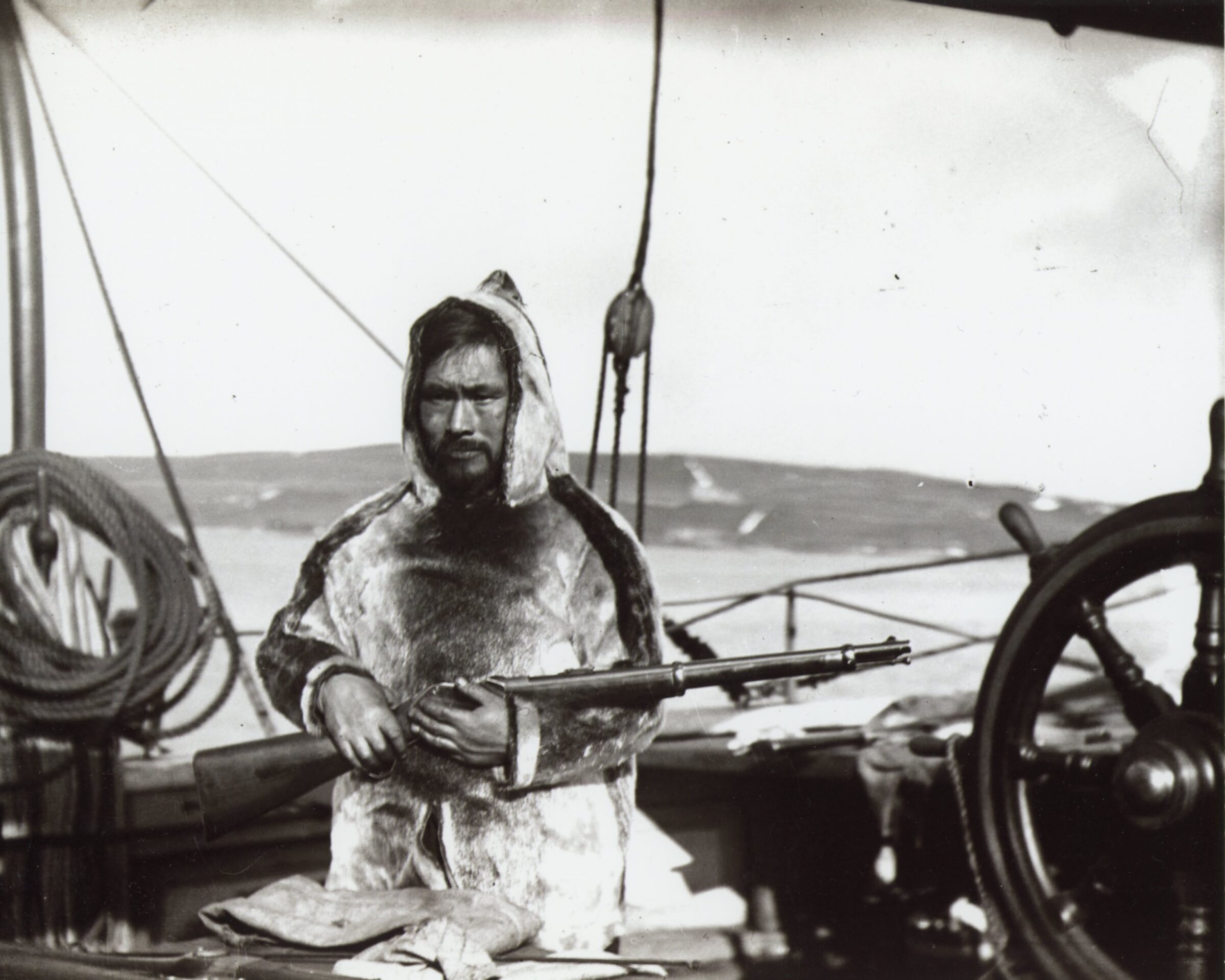 The ship Maud made a stop in Lerwick, Shetland, to pick up additional crew members. Etwango’s charm shone through as he took to the shore, where he demonstrated the use of a kayak in traditional attire. This exhibition attracted around 2,000 spectators, all eager to watch him paddle around Victoria Pier. He also performed native songs and dances in the town hall alongside Capt. Adams, earning more gifts for his family.