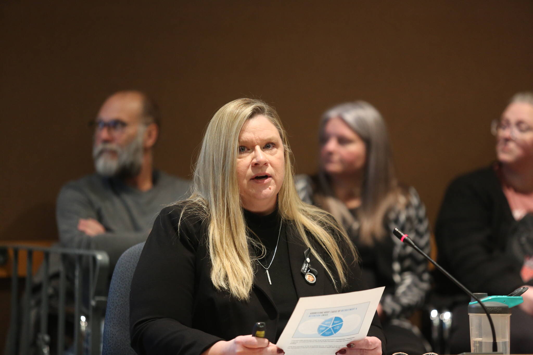 During a presentation to the school board on Monday, BTA President Sandra Thompson highlighted that insufficient funding is leading to overworked teachers and inadequate support for students. “Less funding means less support for students and more overworked teachers,” she stated.