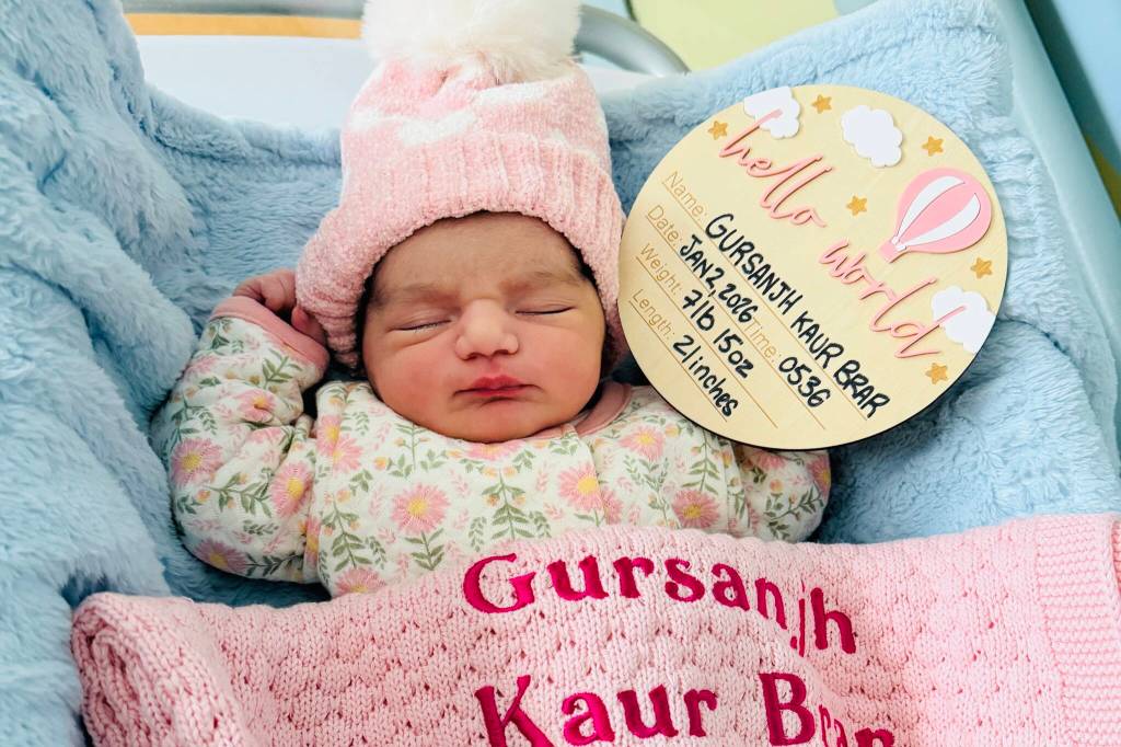 The first baby of 2026 in the Kootenay Boundary region was born early Friday morning at Kootenay Boundary Regional Hospital in Trail, British Columbia. Gursanth Kaur Brar made her entrance at 5:36 a.m., weighing seven pounds, 15 ounces. She is the daughter of Sandeep Brar and his partner Gurjeet Brar, who reside in Castlegar.
