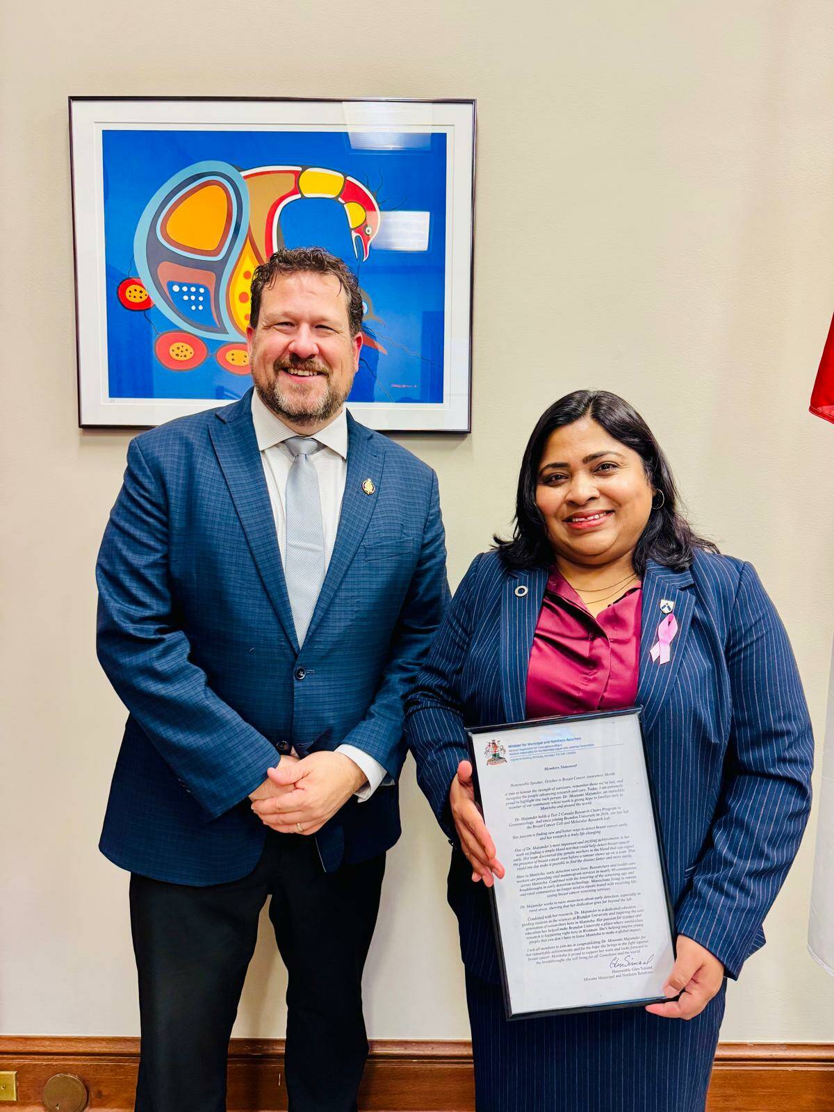 Mousumi Majumder, a researcher at Brandon University, received recognition from the Manitoba Legislature for her innovative work on a blood test aimed at early detection of breast cancer. The acknowledgment, delivered through a Member’s Statement by Glen Simard, the MLA for Brandon East, occurred during Breast Cancer Awareness Month. Simard emphasized that Majumder’s research offers “hope to families here in Manitoba and around the world.”