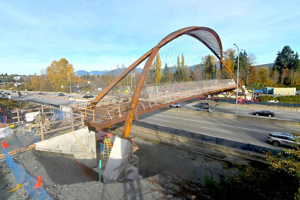 New Pedestrian Bridge Installed Over Highway 1 Near Burnaby