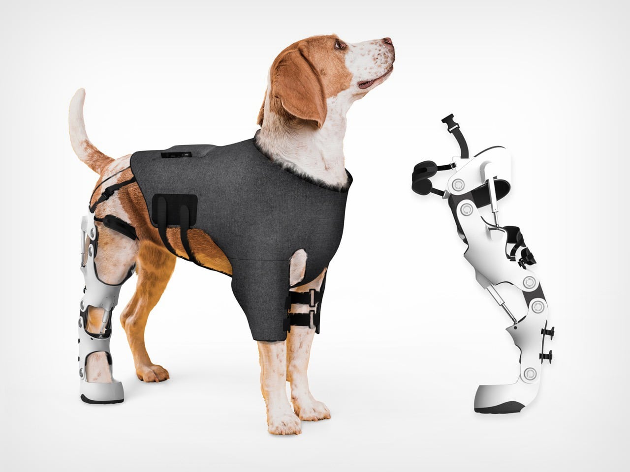 Personalization is a key aspect of the design. Each dog has distinct physical characteristics and injury profiles, which is why the exoskeleton is crafted using advanced 3D printing techniques based on individual body scans. This ensures a customized fit that distributes weight evenly, enhancing comfort and stability. The use of lightweight materials, soft memory foam padding, and non-slip surfaces prioritizes long-term wearability, making the device suitable for both clinical rehabilitation and everyday activities.